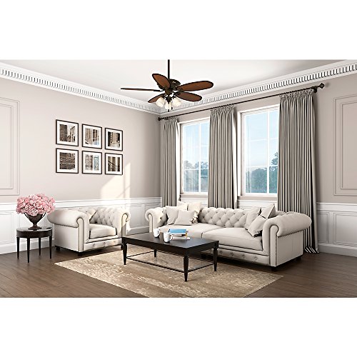 With its Large decorative carved-wood blades, the crown Park demands attention. This simple yet elegant design showcases an intricate three-light fixture with beading detail and an attractive motor housing with matching blade irons. This Large room Fan will brighten your days while keeping you cool.Feature