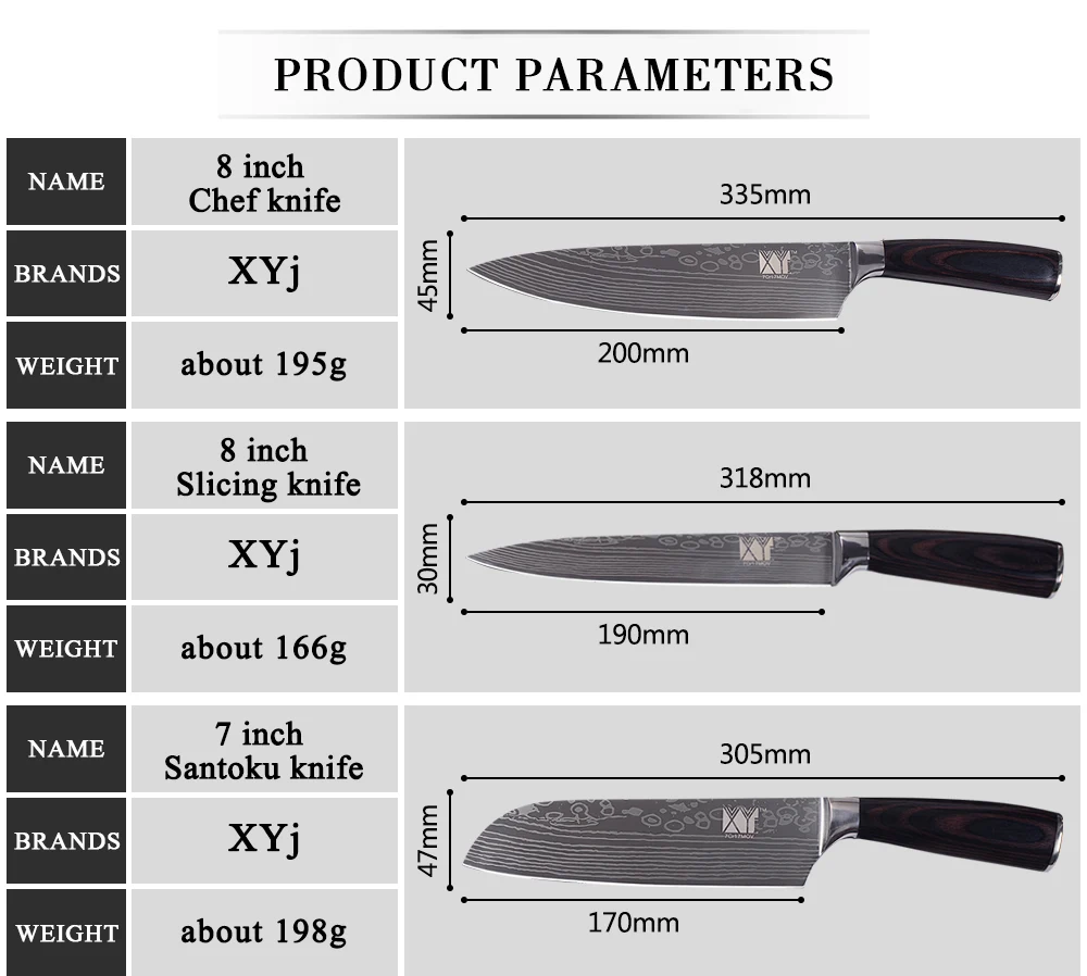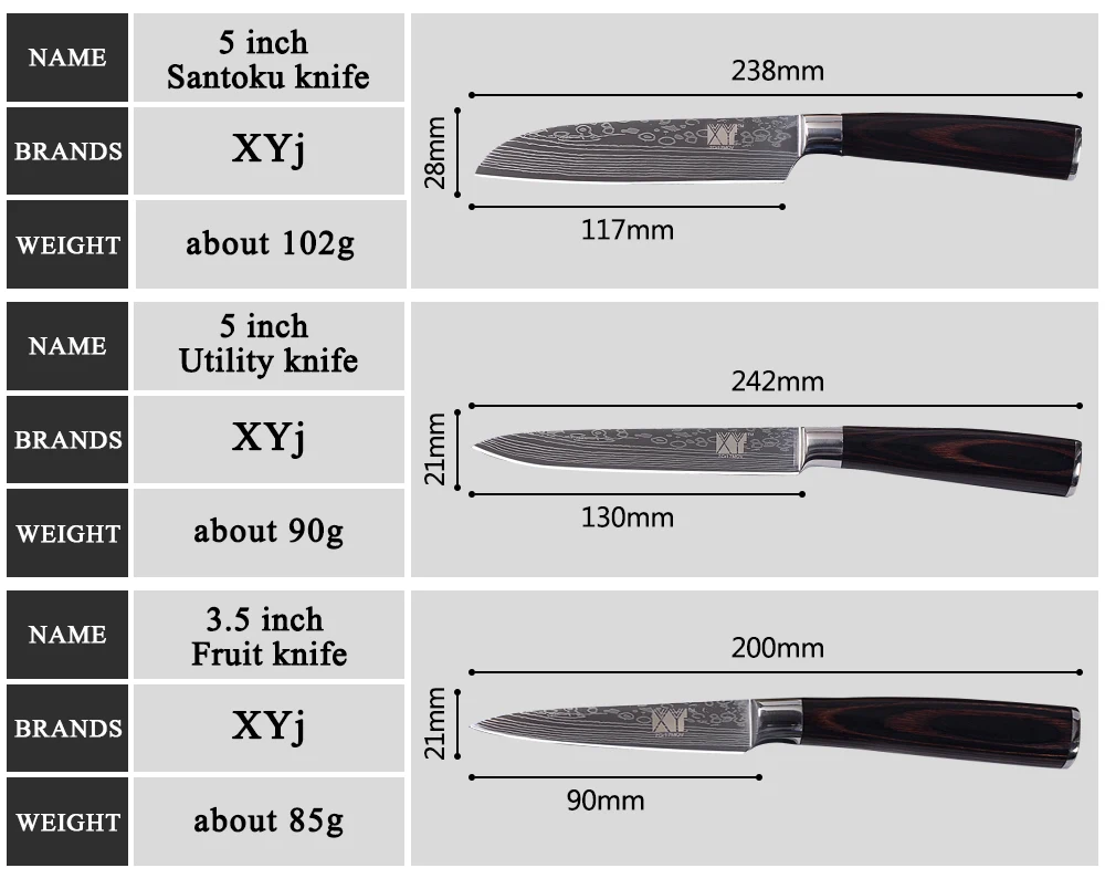 Knife Size:3.5 inch, 2*5 inch, 7 inch, 8 inch, 8 inch