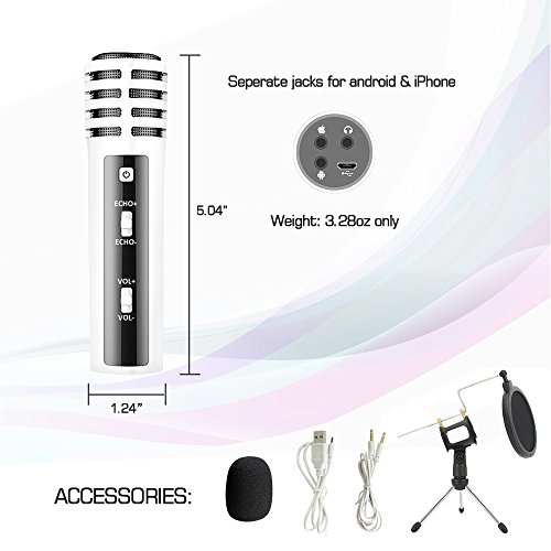 -. Title : Portable Mini Condenser Microphone for Iphone Phone With Stand Built-in Sound Card Echo Recording Karaoke Singing for Android IOS by XIAOKOA