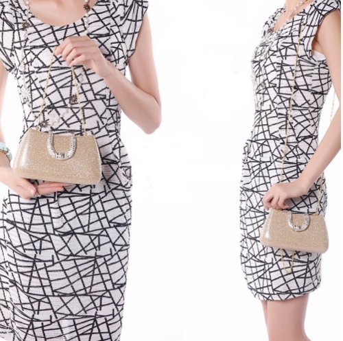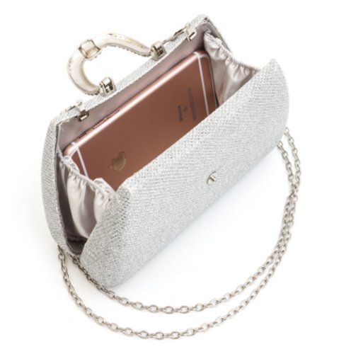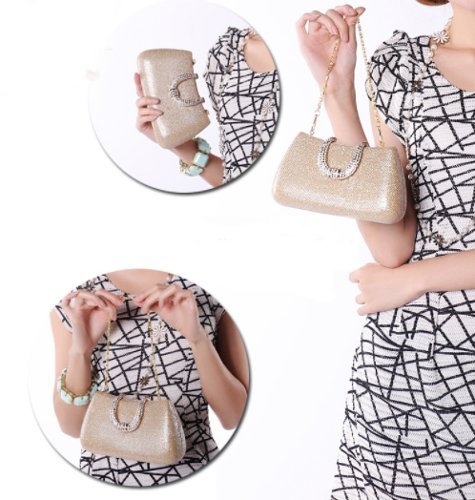 -. Feature : セット内容:クラッチバッグ・チェーン2本 / サイズ:(バッグ)横約18cm×縦約10cm×底幅約5cm (付属品)手持ちチェーン1本 約38.5cm、ショルダーチェーン1本 約118cm / カラー:ゴールド、シルバー、ブルー / 開閉口:最大約6.5cm / 様々なシーンで使い分け。取り外し可能なチェーン2本付き。ショルダー、クラッチ、手持ちバッグとして使える3WAY仕様。