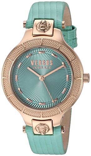 Versus by Versace Women's 'Claremont' Quartz Gold and Leather Watch, Color:Green (Model: VSP480418)