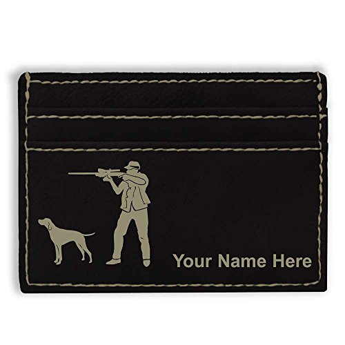 -. Binding : Apparel -. Brand : SkunkWerkz -. ClothingSize : Medium -. Color : Black -. Department : mens -. EAN : 0655222572387 -. Feature : The Money Clip Wallet is laser engraved with the image that you see in the photo. / Your name or personalized message will be engraved on the wallet for free. / Synthetic leather construction. Includes space for 3 credit cards. / You may have one line of engraved text - 20 characters maximum. / Click the "Customize Now" button to begin customizing your wallet. -. ProductGroup : Apparel -. ProductTypeName : ACCESSORY -. Size : Medium -. Title : Money Clip Wallet, Hunter with Dog, Personalized Engraving Included (Black) -. UPC : 655222572387