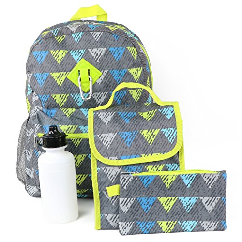 -. Feature : Set includes backpack with main zip compartment and front zip compartment, insulated lunch bag, pencil case, water bottle and a carabiner / Adjustable padded shoulder straps, loop handle, mesh side pockets / 100% polyester / Wipe clean, hand wash