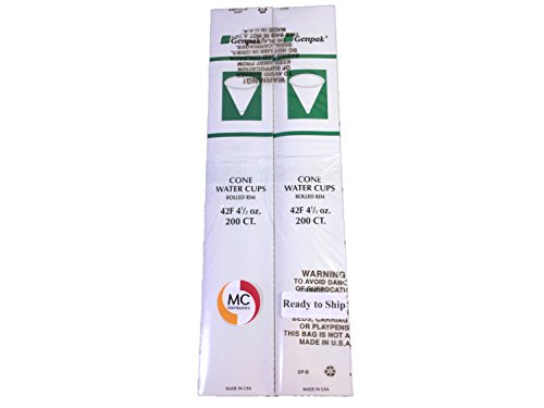 Genpak Harvest 4.5 oz Compostable Paper Cone Water Cup - Recyclable, Rolled Rim 400ct. W42F {Vasos de Agua con Forma de Cono} (2-Boxes (400ct.))