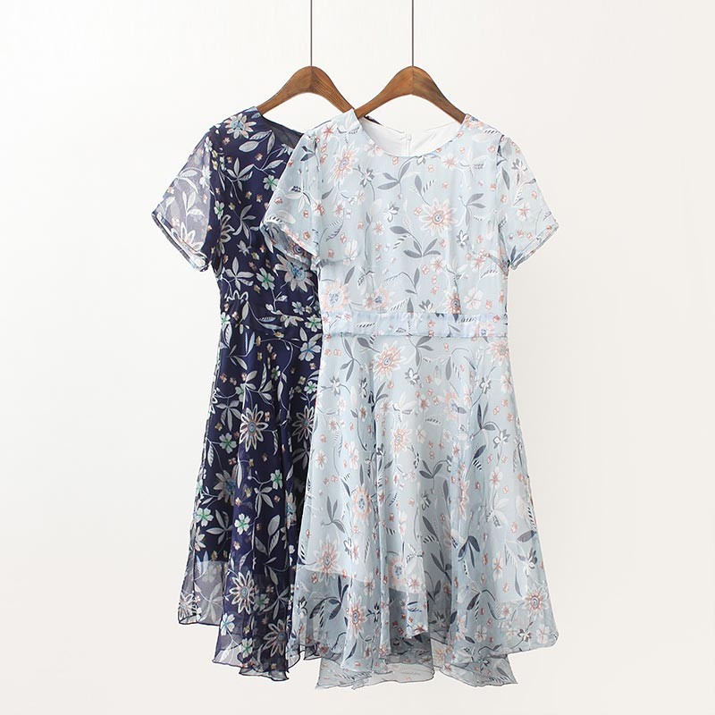 やさしいフラワープリントで袖とスカート部分の透け感が涼しげで動くと綺麗☆