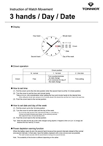 ★ FUNCTION: This is a sport and casual watches. Luminous hands can easily be used at night or dark to light. It is imple to adjust the calendar&week. The watch is suitable for many occasions to wear, but also for a variety of sports wear.
