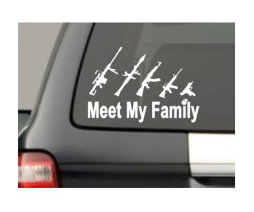 -. Brand : stickerciti -. EAN : 0855541005027 -. Feature : Original Designs:All of our decals are original designs by us. Please notify us if you find anyone copying our designs. / Package Come With one Zombie Hunter Permit Decal / APPROXIMATELY SIZE: 7.5 inch X 5.25 inch / Decal will come as 3 parts - the backing paper, the sticker itself, and the clear transfer tape. / Die Cut - Not a cheap paper Sticker with NO BACKGROUND -. Label : stickerciti -. Manufacturer : stickerciti -. Model : scd022 -. MPN : scd022 -. PackageQuantity : 1 -. PartNumber : scd022 -. ProductGroup : Automotive Parts and Accessories -. ProductTypeName : AUTO_ACCESSORY -. Publisher : stickerciti -. Studio : stickerciti -. Title : Meet My Gun Family Figure Family funny Vinyl sticker Bumper Decal (Come With Zombie Hunter Permit Decal) -. UPC : 855541005027