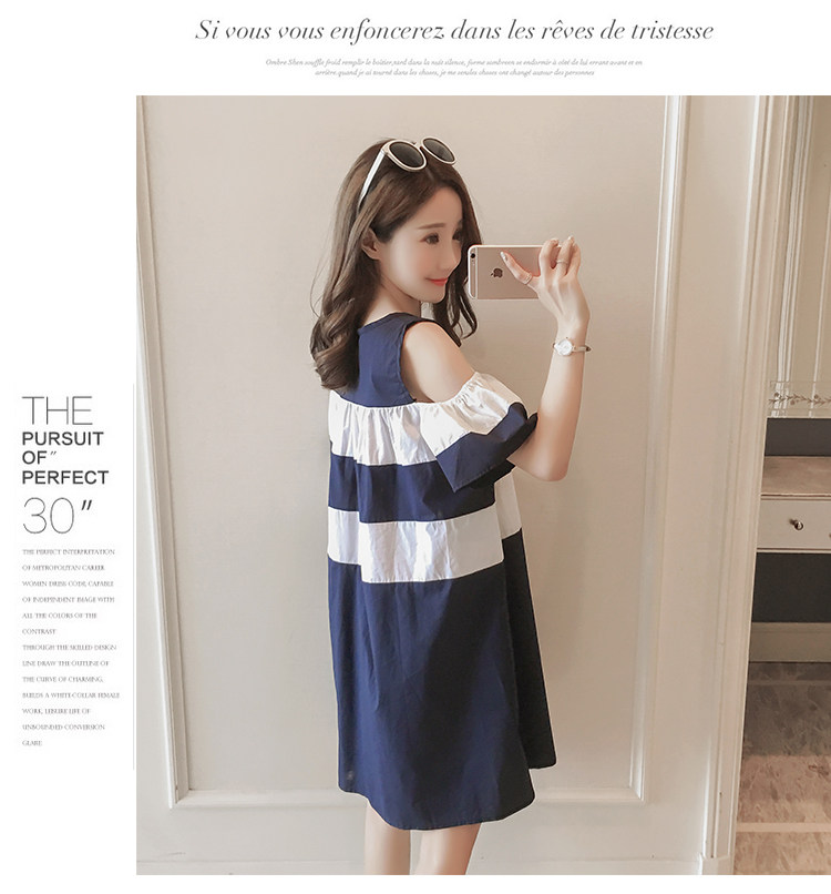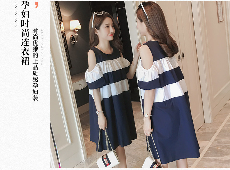 孕妇装夏装露肩夏季新款韩版连衣裙中长款上衣潮妈裙子怀孕妇
