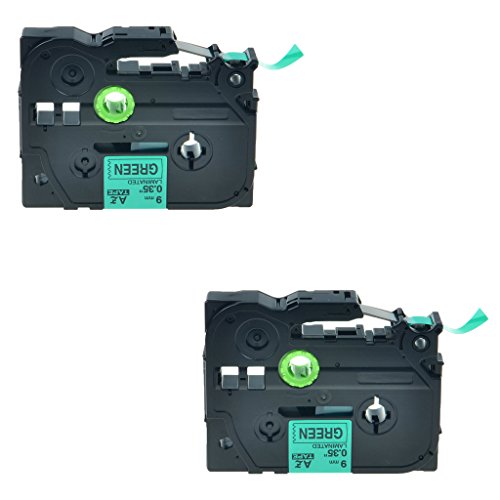 -. Title : NineLeaf 2 Pack Adhensive Standard Laminated Labelling Replacement for Brother Black on Green TZ-721 Tze-721 TZe721 9mm Label Tape P-touch P.R.Inter