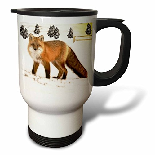 3dRose tm_18454_1 Fractalius Red Fox Travel Mug, 14-Ounce, Stainless Steel