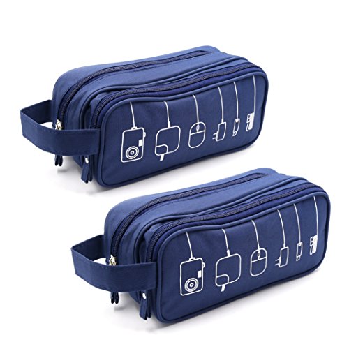 HONSKY 2 Set Medium Water Repellent Travel Electronics Accessories Gadget Cable Cord Organizer, Hanging Cosmetic Makeup Toiletry Space Storage Bags Cases Pouch for Kids Women Men,Blue