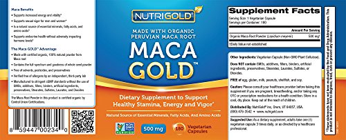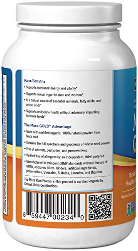 Maca Gold™ by Nutrigold® is formulated using pure, high-quality, certified-organic Maca powder to support sexual vigor and enhanced energy. It does not contain any additives, preservatives, or artificial ingredients. Maca Gold is also independently certified by a third-party lab to be free of soy, milk, wheat, gluten, eggs, and shellfish.*