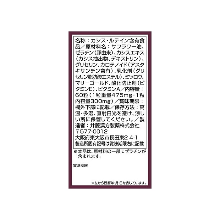 원본상품명: 井藤漢方製 カシス+ルテイン 約20日分 300mgX60粒