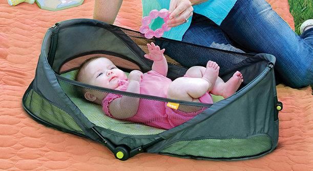 PRODUCT FEATURES: On the go? No need to plan your day around naptime with this Fold 'n Go Travel Bassinet. Light, durable, and safe, this bassinet is super easy to pack and carry-and set up is so simple that you can have naptime anytime. Whether your plans include a picnic, a cross-country adventure, or just coffee with friends, you can be secure knowing that your most important priority is safe and snug with you. The Brica Fold 'n Go Travel Bassinet features sturdy side walls with Safe-T-Lock system, mesh panels, and breathable fabric to provide both comfort and peace of mind. Includes a removable mattress pad and sheet for easy cleaning. Lightweight design and carry handle for parents on-the-go (under 3 lbs). Durable frame construction designed for maximum strength and stability.
