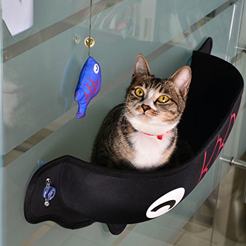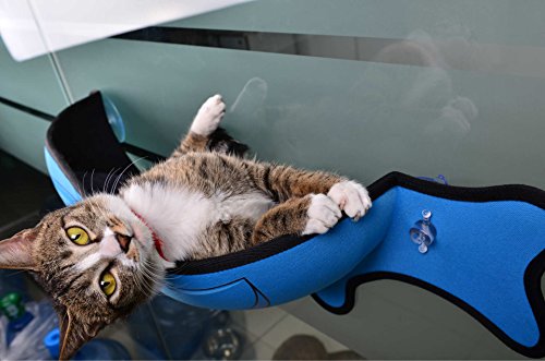 Kathson Cat Window Perch - Installs in seconds to glass windows and doors and features industrial strength suction cups that hold up to an amazing 30 pounds! The Sunny Seat provides your cat a front row view of nature, weather, people and more without taking up valuable floor space. Perfect for cats that like to bask in the warm sun or active cats that desire a high vantage point. Helps reduce separation anxiety and keep messy hair off of your furniture.