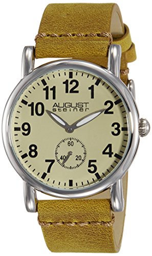 ReleaseDate : 2014-04-04 Studio : August Steiner Publisher : August Steiner Binding : Watch Product Description This classic ladies watch from August Steiner has a fresh new look. The matte dial features a 60 second sub dial and luminescent hands. With a genuine leather strap and the Swiss quartz movement, this timepiece is a great addition for every lady. 0