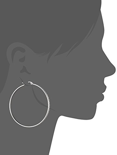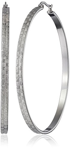 -. Feature : Embossed stainless steel hoop earrings featuring click-top back finding / Imported
