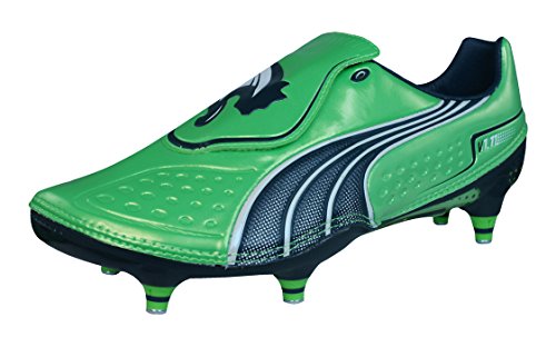 Binding : Apparel Product Description Puma V1.11 SG Mens Football Boots / Cleats - Exude confidence out on the football pitch in the Puma v1.11 SG Mens Football Boots, offering an extremely lightweight construction with Puma's latest UNI technology combined with supportive heel cup and TPU plate to increase stabilit. These mens Puma football boots also benefit from an external, embossed design to key striking points improving precision and accuracy, finished off with a 6 stud configuration for excellent traction and speed when your need it the most Mens football boots Full cover to the laces Shaped ankle with soft synthetic textile lining Embossed pattern to the striking zones UNI technology minimise weight. Lightweight microfiber upper. Removable conical studs for use on soft grounds Puma graphic Includes a textile boot bag. 0