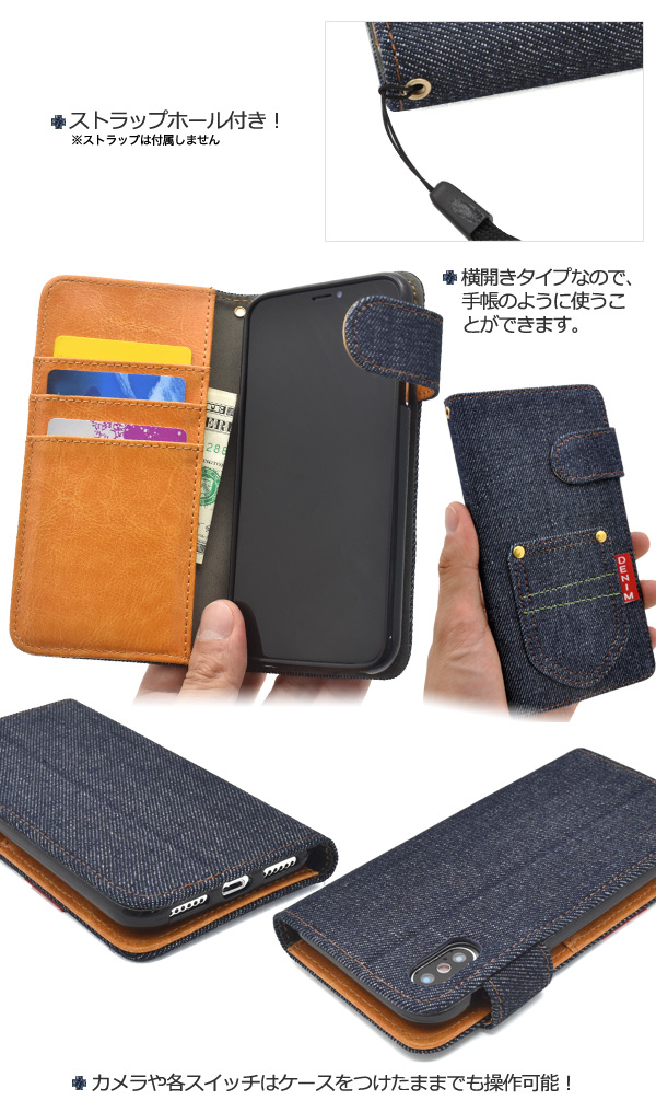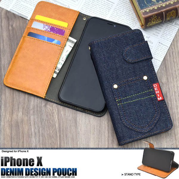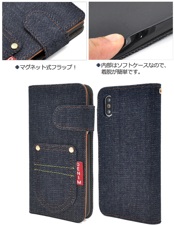 iPhone X/XS用ポケットデニムデザイン手帳型ケース