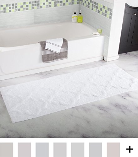 Lavish Home 100% Cotton Trellis Bathroom Mat - 24x60 inches - White