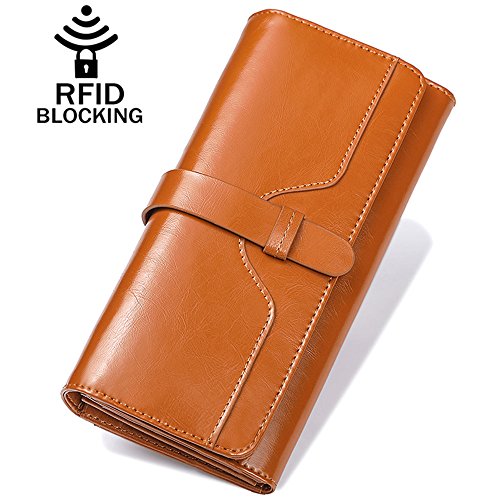 ? Gift Box Packing Perfect Gift for Ladies Tivifox genuine leather wallet with wax finish, luxury and comfortable; RFID blocking, protect against the growing risk of electronic pick pocketing thieves; Large capacity; clutch wallet, card organizer, comes with a gift box, good choice as a gift for ladies to be used in office, parties or other daily occasions.