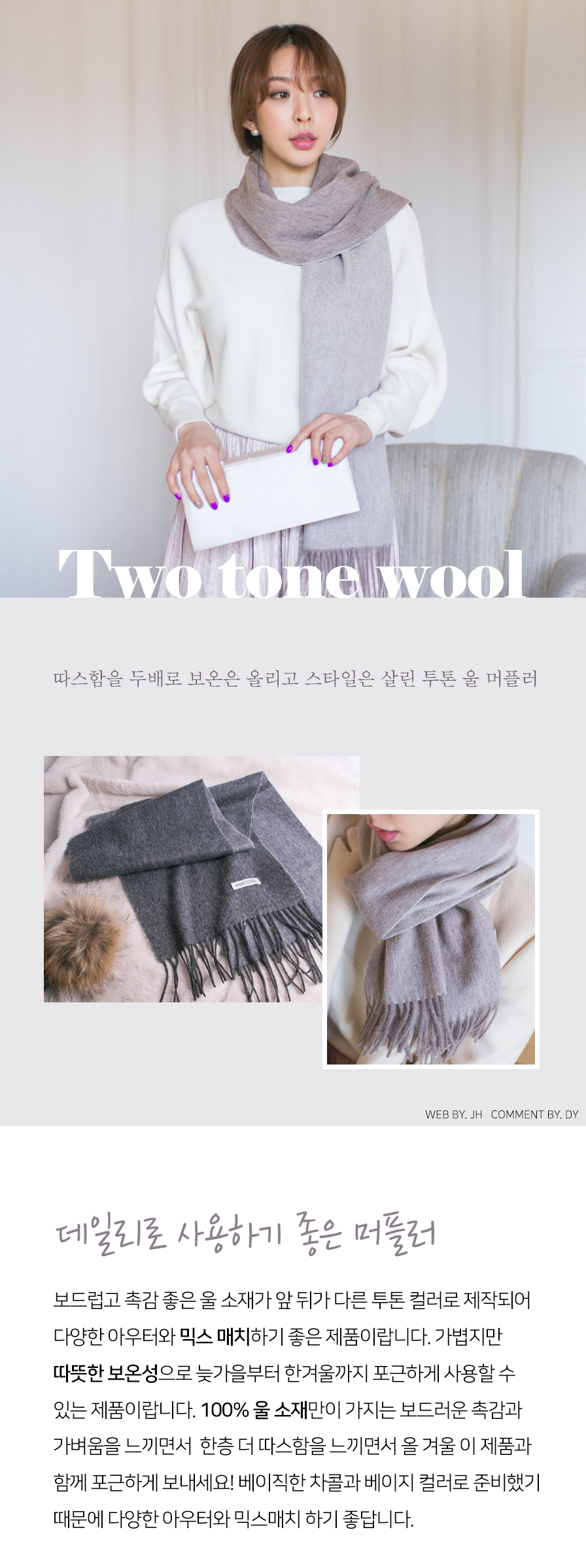 보드럽고 촉감 좋은 울 소재가 앞 뒤가 다른 투톤
