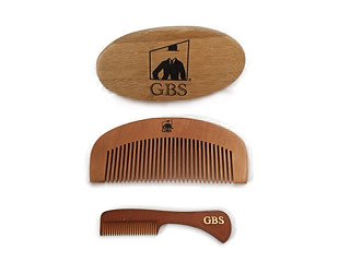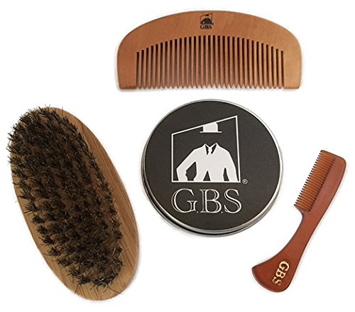 GBS Combo Set (3 Pc Kit) Premium Oval Wood Beard Brush with Boar Bristles, Bamboo All Fine Bear...