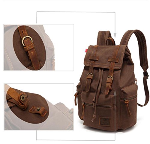 -. Brand : Bronze Times -. Department : Mens -. Feature : Material: Canvas and crazy horse faux leather / Size: 11.2'' (L) x 6.5'' (W) x 16'' (H); 17 L capacity / Construction of this bag: a main pocket,a vice zipper pocket in the front,two vice zipper pockets on the bottom of both sides;inside the main pocket: a concealed zipper pocket and an interior tablet slot pocket for iPad.Multiple lays of pouches are convenient for you to put enough stuffs / Double 2.5'' wide shoulder straps can be adjusted to 17.7'' - 35.4'' long / Large capacity: 17 L; Be able to put in A4 paper file and magazines and iPad tablet -. Label : Bronze Times -. Manufacturer : Bronze Times -. Model : btbags0815-6VA -. MPN : Bronze Times -. PartNumber : Bronze Times -. ProductGroup : Sports -. ProductTypeName : OUTDOOR_RECREATION_PRODUCT -. Publisher : Bronze Times -. Size : 11.7(L)inch *7.02(W)inch *14.82(H)inch -. Studio : Bronze Times -. Title : Bronze Times(TM) Large Capacity Canvas Leather Backpack Rucksack Schoolbag