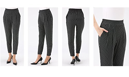 -. Feature : [カラー]: ブラック, ミスティブラウン, サンドグレー, ネイビー, ストライプ(ブラック×ホワイト) / [サイズ]: M, L, LL, 3L / [ヒップ]: 106cm, 111cm, 119cm, 127cm / [股下]: 62cm, 62cm, 62cm, 62cm / [前股上]: 29cm, 29cm, 30cm, 30cm / [わたり幅]: 31cm, 32cm, 34cm, 35cm / [裾幅]: 12cm, 13cm, 15cm, 16cm