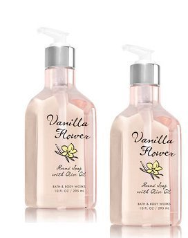-. Binding : Misc. -. Brand : Bath & Body Works -. EAN : 0745577641842 -. Feature : 2 pack Vanilla Flower Hand Soap with Olive Oil 10 Oz / Vanilla Flower: rich blend of vanilla orchid, almond flower & comforting sandalwood. / Specially formulated with rich, conditioning Olive Oil, our luxury hand soap nourishes skin and leaves your hands feeling soft, smooth and lightly scented. / Beautiful bottle adds a touch of décor at your sink. -. IsAdultProduct : 0 -. Label : Bath and Body Works -. Manufacturer : Bath and Body Works -. MPN : AB-99542 -. PackageQuantity : 1 -. PartNumber : AB-99542 -. ProductGroup : Beauty -. ProductTypeName : BEAUTY -. Publisher : Bath and Body Works -. Size : 10 Ounces -. Studio : Bath and Body Works -. Title : Bath and Body Works 2 Pack Vanilla Flower Hand Soap with Olive Oil. 10 Oz -. UPC : 745577641842