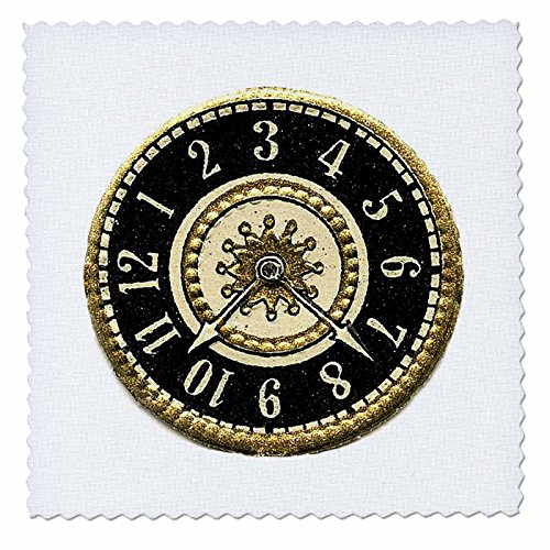3dRose Gold and black Clock - Quilt Square, 8 by 8-Inch (qs_37263_3)