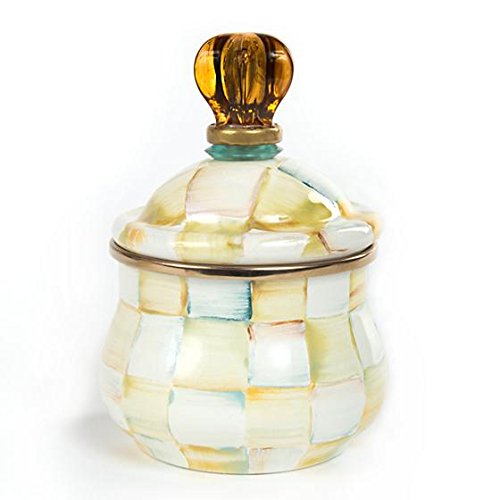 Studio : MacKenzie-Childs Publisher : MacKenzie-Childs Binding : Kitchen Product Description Our Parchment CheckTM tabletop accessories introduce the pattern at teatime, mealtime, or whenever it's time to celebrate. Taking your lumps becomes a delight with our Parchment CheckTM Enamel Lidded Sugar Bowl-the only question is, one cube or two? But why stop at sugar-this lidded bowl is perfect for jam, sauces or elsewhere to hold anything from cotton balls to paper clips. 0