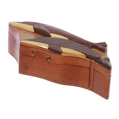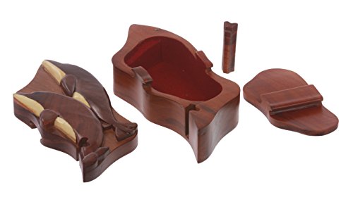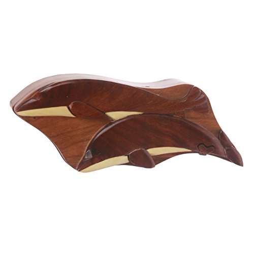 This Dolphins shape secret jewelry box can only be opened if you know the secret. Perfect gift for that special someone. Beautifully Hand Made Wooden Box with Embossed Dolphins on the lid. It has a secret locking device, although the big secret opening isn't all that difficult to figure out. It is brand new.