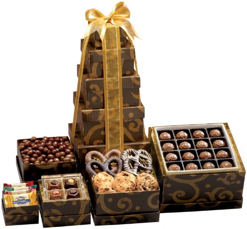 -. Feature : Great gift for birthday, thinking of you, or any occasion / Perfect gift basket for family and friends, or as a corporate office gift. / Gift tower includes: Chocolate Chip Cookies, Soft Vanilla Caramels, Butter Toffee Peanuts, Brown & Haley Almond Roca, Cajun Mix, Gourmet Caramel Popcorn , Caramel Apple Kisses, Honey Roasted Cashews, Butterscotch Candy Discs, Chocolate flavored sweets / GIFT TOWER DIMENSIONS: 8 x 5 x 18 high / Kosher Certified OK D. Giving a kosher gift ensures that all recipients can enjoy and partake in your gift.