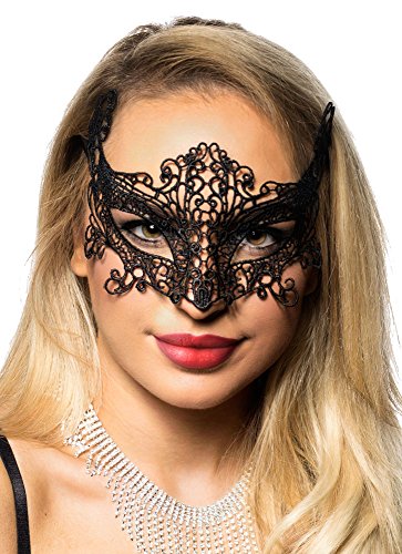 -. Brand : Elevate Costumes -. ClothingSize : One Size -. Color : Black -. Department : womens -. EAN : 0616983174692 -. Feature : Black slightly stiffened filigree lace mask with cat shaped eye holes. / Mask can be shaped to your own face by slightly heating with a hairdryer and pressing it against your face until cool. / The mask secures to the face with black ribbons and is 5" high and 7 1/2" wide. / This beautiful mask is soft, lightweight and comfortable to wear all night long. -. Label : Elevate -. Manufacturer : Elevate -. PackageQuantity : 1 -. ProductGroup : Apparel -. ProductTypeName : APPAREL -. Publisher : Elevate -. Size : One Size -. Studio : Elevate -. Title : Black Lace Cat Eyes Masquerade Mask by Elevate Costumes -. UPC : 616983174692