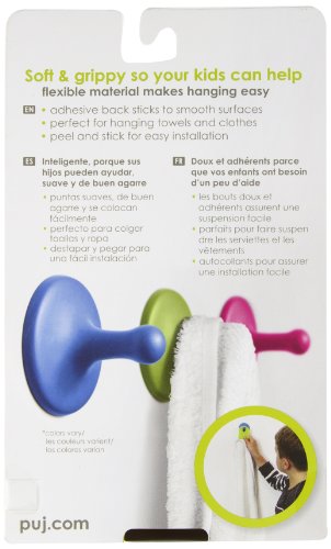 -. Brand : Puj -. Feature : Peel and stick for easy installation. Removes cleanly from smooth surfaces / Soft and flexible material makes hanging easy and is kid friendly / Holds up to 3 lbs / Adheres best to smooth surfaces such as glass, tile, metal, and shower wall / Perfect for hanging keys, jewelry, towels, purses, headphones, small backpacks and thousands of other household items -. IsAutographed : 0 -. Label : Puj -. Manufacturer : Puj -. NumberOfItems : 1 -. ProductGroup : Kitchen -. ProductTypeName : KITCHEN -. Publisher : Puj -. Studio : Puj -. Title : Puj Nubs Peel-and-Stick Hooks for Kids