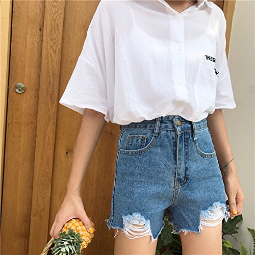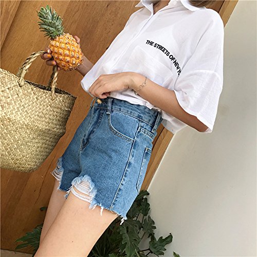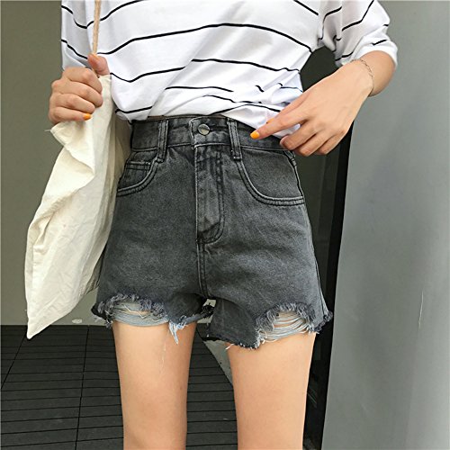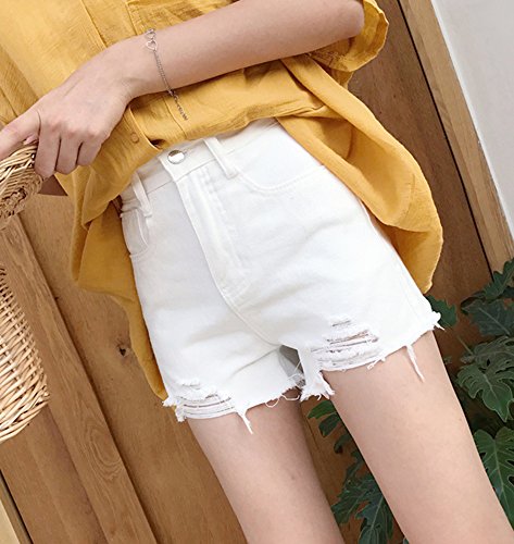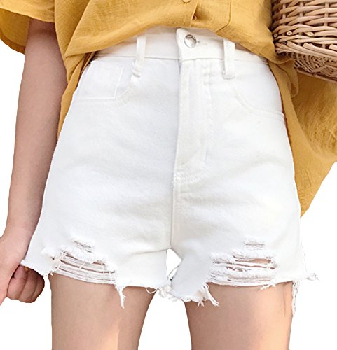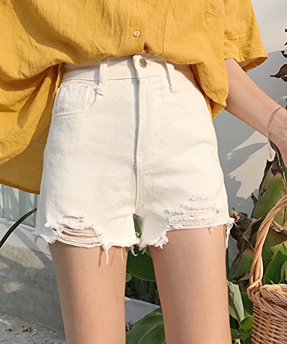 -. Feature : ハイウエストのクラッシュダメージのデニムショートパンツです。 / S:裾丈30cm、ウエスト63cm、ヒップ88cm M:裾丈31cm、ウエスト67cm、ヒップ92cm L:裾丈32cm、ウエスト71cm、ヒップ96cm  / 夏にぴったりの可愛いダメージ加工のデニムショートパンツです。今流行のダメージジーンズ風で、オシャレな女子にぴったりの一品!全体的にシンプルなデザインなので、着こなしもしやすく裾のダメージ加工がより引き立ちます。シンプルながらAラインのシルエットで、フェミニンさもしっかり演出してくれています。ホワイト、グレー、ブルーと着回ししやすいスタンダードなカラーバリエーションも魅力的!サイドポケットがついているので小物などを持って歩くのにも便利です。サイズはS,M,Lの3パターンで、小柄な方から背の高い方まで、無理なく着こなせるのも人気の理由です。ハイウエストタイプなのでお腹周りが気になる方も、上手に隠して着こなせます。