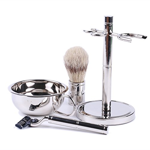 Stainless Steel Shaving Set for Men - Bowl, Brush, and Stand by Science Purchase