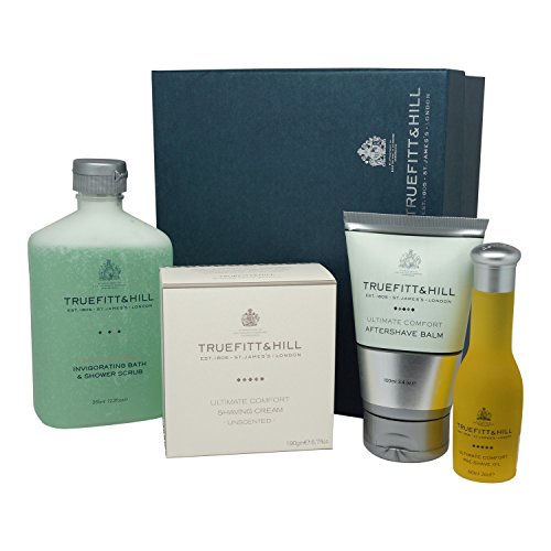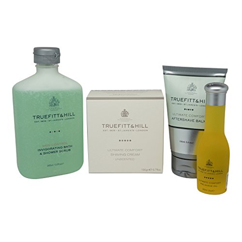 - Set includes four items from the new Ultimate Comfort Range: Shaving Cream Bowl (190g), Ultimate Aftershave Balm (100ml), Pre-Shave Oil (60ml) and Invigorating Bath & Shower Scrub (365ml).