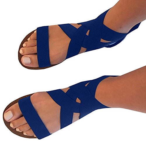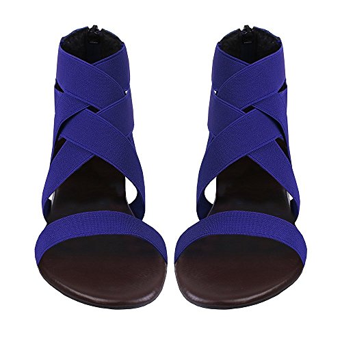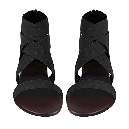 (Brilanter)/Women's/Sandals/DIRECT FROM USA/Womens Summer Fashion Elastic Ankle Strap Open Toe Flat Sandals Zipper Shoes Bohemian Sandals