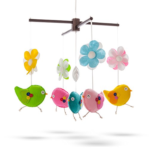 Marmelada Giggling Birds HandMade soft felt hanging mobile will add style and color to your nursery room
