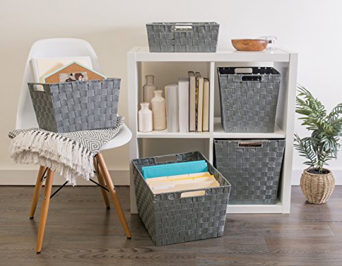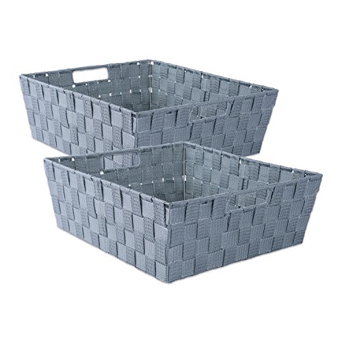 DII Durable Trapezoid Woven Nylon Storage Bin or Basket for Organizing Your Home, Office, or Closets (Tray - 13x15x5") Gray - Set of 2