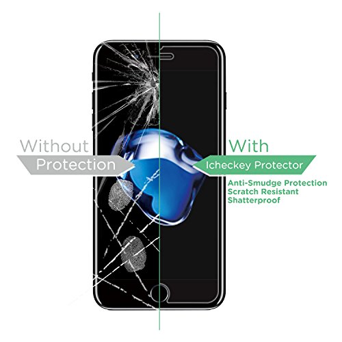 -. Feature : Designed and Developed for the New Released iPhone 7(4.7 inches): Precise laser cut, Perfect match your iPhone 7, give maximum protection for your touch screen, 100% compatible with 3D touch functionality / P.R.Istine Viewing and Smooth Feel: Tempered Glass feels far more smoother than flimsy PET plastic screen film, Only 0.33mm, with 99% ultra-clear high transparency, and oleophobic anti-fingerP.R.Int/smudge coating help against sweat and oil & water residue from fingerP.R.Ints, maintain your iPhone 7's original HD viewing and P.R.Istine tactile experience / Scratch Resistant/Shatterproof: Made of high quality Japanese Glass with 9H* hardness rating, these screen guards are resistant to high-impact drops, scratches, scrapes, and bumps. Built-in Anti-Shatter Film: If broken, tempered glass breaks into small pieces that are not sharp, safe for both you and your phone / Special Note: Due to the curved edges of iPhone 7 and to enhance compatibility with all protective cases, our screen protectors do not cover 100%, but only the flat surface. One more thing: with special self-adhesive design, our screen protectors are easy to apply without getting any air bubbles / What You Get: 2*ICHECKEY Ultra-clear screen protector, 2*alcohol prep pad, 2*stickers, 1*microfiber cloth
