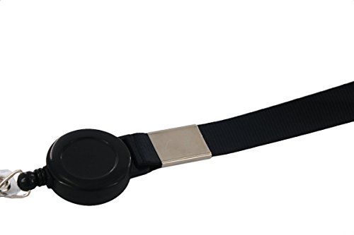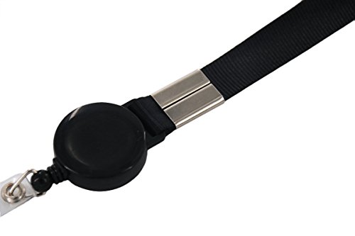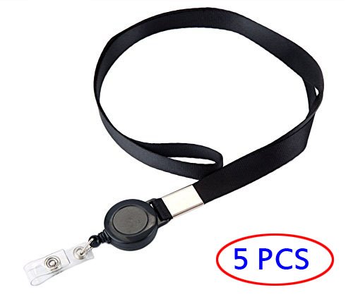 Fushing 5 Pcs Retractable Reels Key Chains Lanyards Neck Straps Band for ID Badge Holder for Business School Event (Black)