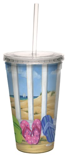 Tree-Free Greetings cc33412 Fun Flip Flop Beach by Paul Brent Artful Traveler Double-Walled Cool Cup with Reusable Straw, 16-Ounce, Multicolored