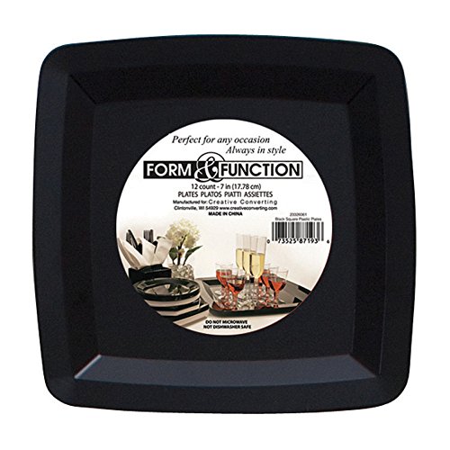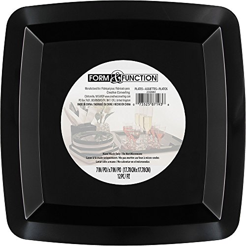 Creative Converting 12 Count Form and Function Square Plastic Dessert Plate, 7", Black