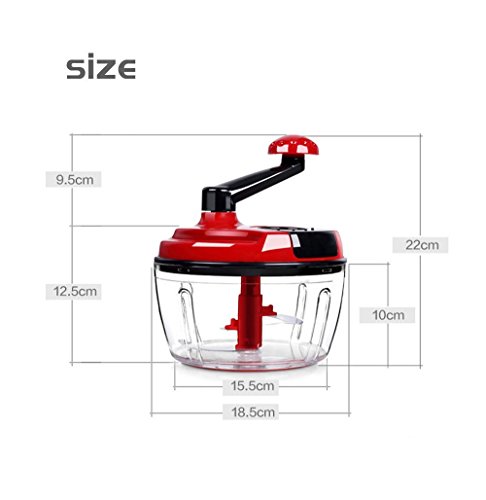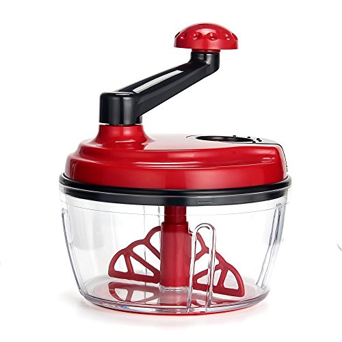 Momugs 8 Cup Red Food Processor, Manual Hand-powered Crank Large Chopper Mincer Blender Mixer Cutter with Clear Container for Baby Kids Toddler to Chop Meat Fruits Vegetables Nuts Herbs Onions Garlics