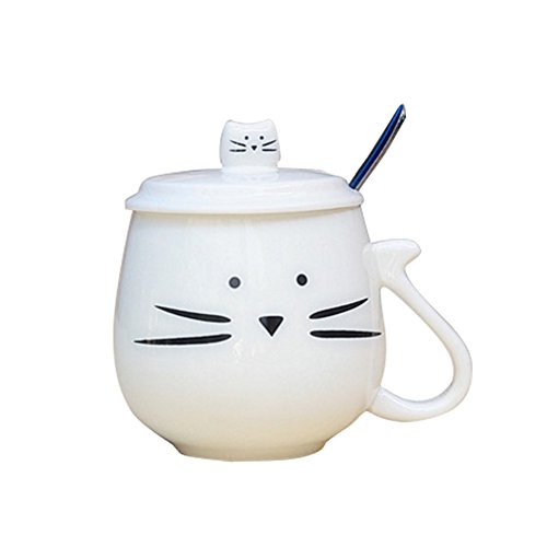 -. Title : Amao Cute Cat Mug Ceramic Handmade Coffee Mug Cup Tea Mug with Lid and Spoon Christmas Birthday Gift 10oz