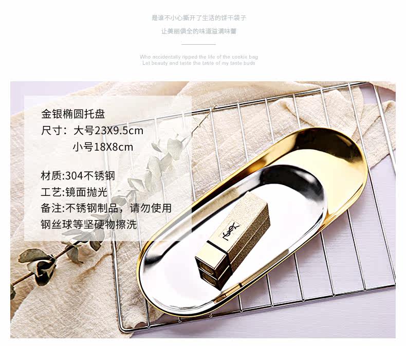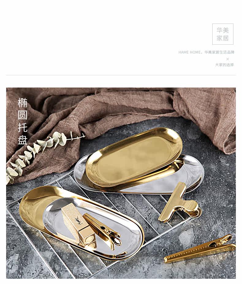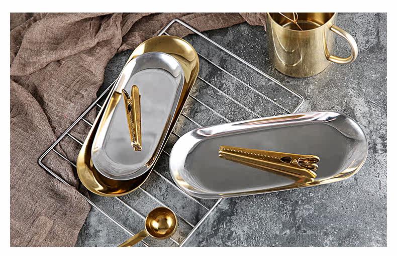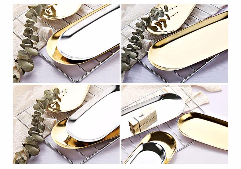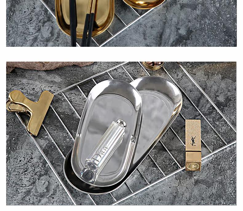 北欧风不锈钢小托盘首饰盘子金属小碟金银色点心托盘摆拍