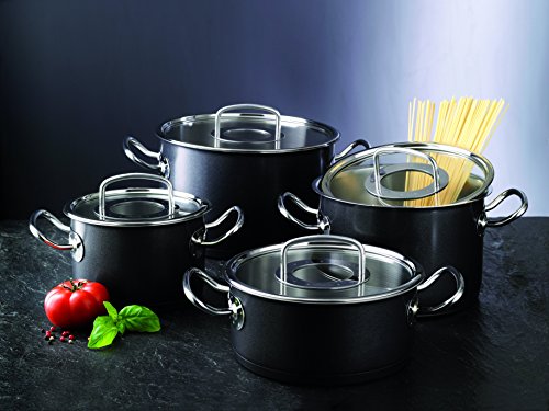 Der cookstar-Allherdboden liegt perfekt auf der Kochfläche auf und verteilt die Hitze optimal für energiesparendes Kochen. Die Edelstahlgriffe der luno Topf-Serie mit intelligentem Hitzepuffer sorgen für eine angenehme Grifftemperatur. Die hochwertige protectal-plus Antihaftversiegelung verhindert das Anhaften - besonders praktisch bei empfindlichen Speisen wie Fisch, Risotto oder Käsesaucen. Die integrierte Mess-Skala an der Topfinnenwand und der sanft abgerundete Übergang zwischen Boden und Topfwand sorgen für leichteres Rühren runden die Palette der Produkteigenschaften ab.